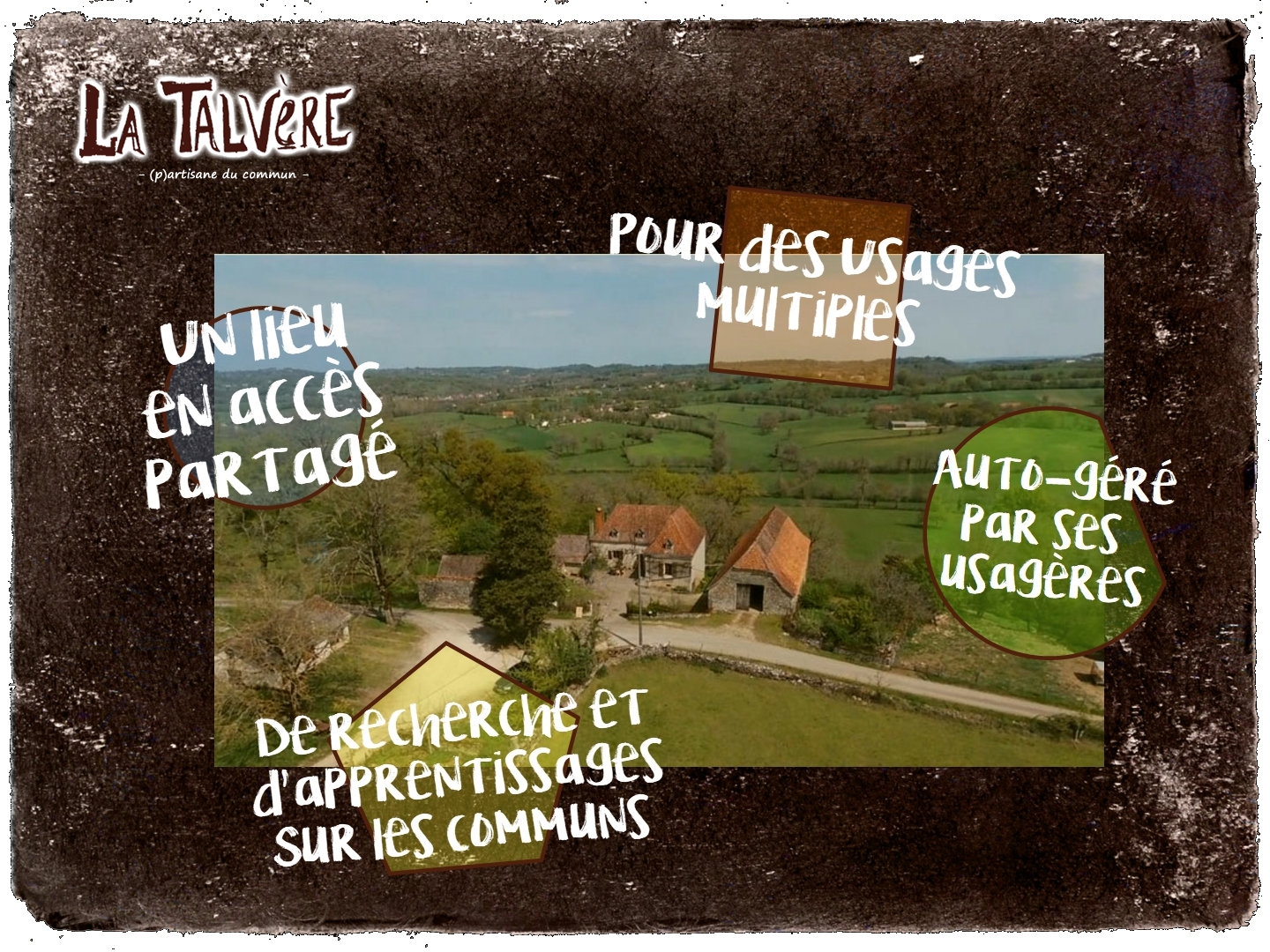 Dans l’enthousiasme on a fait une asso, La Talvère. Elle a trouvé des sous participatifs pour acheter (140 000€ collectés, 75 000€ restants pour boucler l’acquisition), et même trouvé un propriétaire qui ne s’approprie pas. Depuis 2019, elle a vécu plusieurs vies déjà et en même temps encore comme une enfant : étonnée d’être là.