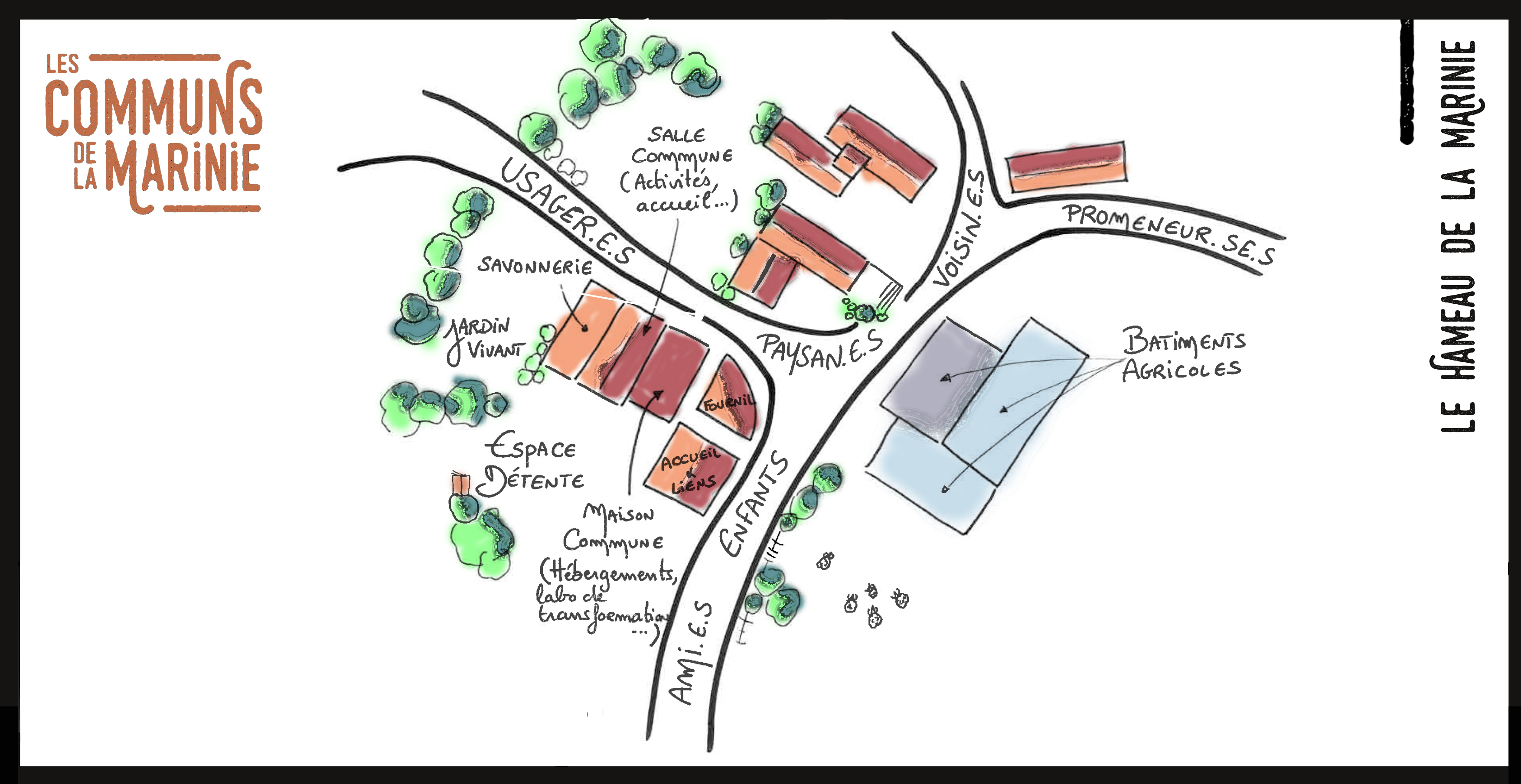 Ces différents pôles travaillent en synergie, afin de faire vivre une dynamique de quartier visant la réflexion collective, l’émancipation et l’autonomie des participant·es. Une fois que ces premières activités seront en place, de nouvelles propositions à l'initiative des habitant·es du quartiers, pourront s'y installer, pour faire évoluer les usages du lieu.